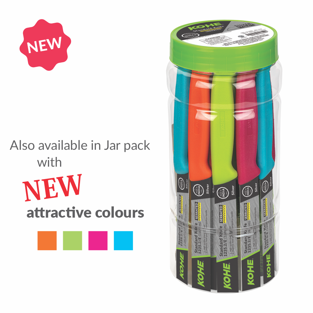 Play with onions in a daily routine is something that bothers the master chefs of the kitchen. Kohe provides easy-to-handle products with high quality. Our Standard Serrated Knife has a high-quality stainless steel blade that gives a see-through with each chopping slice. The serrated edge of the knife is an easy way of penetrating which avoids the tearing of skin and causes less trouble. Standard knife is what is needed in the dining space for cutting and peeling the food items. It is an absolute grip that suits the chef's hand and satisfies the cutting. The handle of the standard serrated knife is made up of hygienic food-grade polypropylene. The way a standard serrated knife presents itself, the job from cutting & peeling is done in a blink of an eye. The precision engineering of the product is a real piece that provides full satisfaction. The grip and the smooth finishing are fundamental in view of the product which Kohe Standard Serrated Knife provides.